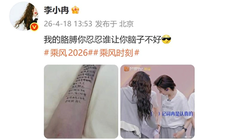 老实说, 第一次看到《乘风2026》二公小考里李小冉把歌词抄满两个胳膊的画面,我差一点就把奶茶喷出来。